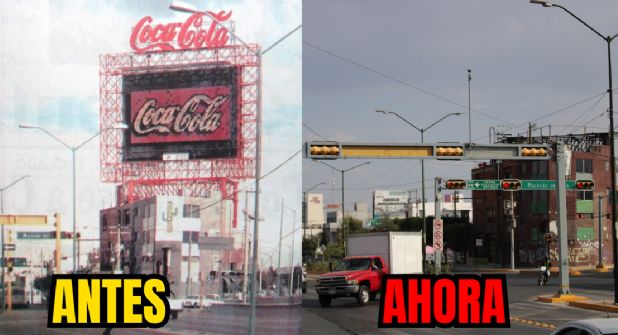 León, Guanajuato.-La imagen muestra el emblemático cruce del bulevar Adolfo López Mateos y el Malecón del Río. Este punto es icónico de la ciudad, y en el centro de la escena destaca un espectacular luminoso de Coca-Cola, elevado sobre una estructura metálica roja que lo convierte en un elemento visual dominante. Este tipo de publicidad era muy popular en las décadas de los 80 y 90, lo que sugiere la temporalidad de la fotografía.