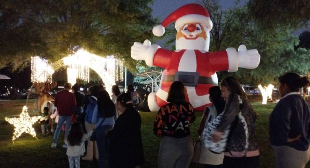 En el interior, las familias aprovecharon para tomarse fotos en los jardines del parque que estaban iluminados y con figuras navideñas.
