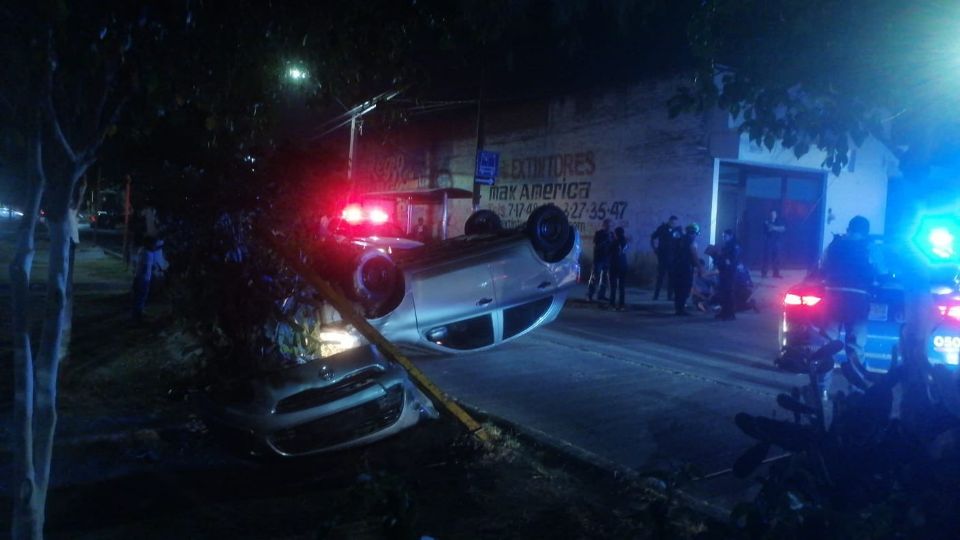 Según el reporte de las autoridades, el Sedán de color gris se impactó primero contra la guarnición del camellón, luego en un árbol y por último se volcó; lo que indica que el accidente pudo ser ocasionado por circular a exceso de velocidad.