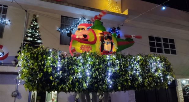 León.- Este fin de semana, vecinos de la colonia La Piscina inauguraron una villa navideña en la calle Virgo. Fue a través de redes sociales que el hecho se popularizó, pues comenzó a circular un video en donde se puede apreciar la decoración, que incluye grandes figuras navideñas y nieve artificial.