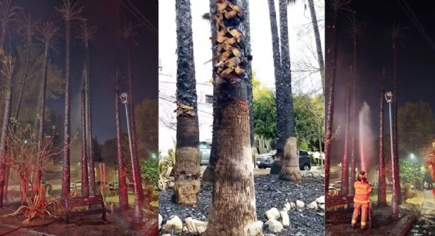 Luego del reporte los bomberos observaron todas las palmeras quemándose y a los vecinos intentando apagar el fuego.