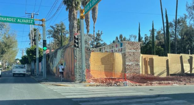 Su barda perimetral en la esquina de dicho cruce principalmente, se encuentra totalmente demolida por los albañiles que a diario trabajan en el lugar. Las obras de demolición de la barda perimetral del panteón municipal iniciaron desde octubre