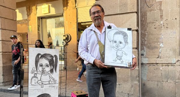 El dibujo de retratos se convirtió en su especialidad, aunque también domina la caricatura, un arte que perfeccionó con años de práctica. “Al principio me costaba mucho hacer caricaturas de niños, porque son los más exigentes, pero le eché ganas, y ahora las hago en minutos”, comenta orgulloso.