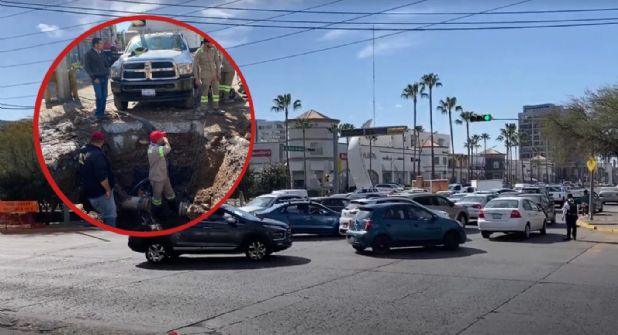 Una cuadrilla de expertos fue destinada prácticamente desde que se reportó el desperfecto, el cual está justo al inicio del bulevar Clouthier, frente a Plaza Mayor, en el cuerpo norte de circulación.