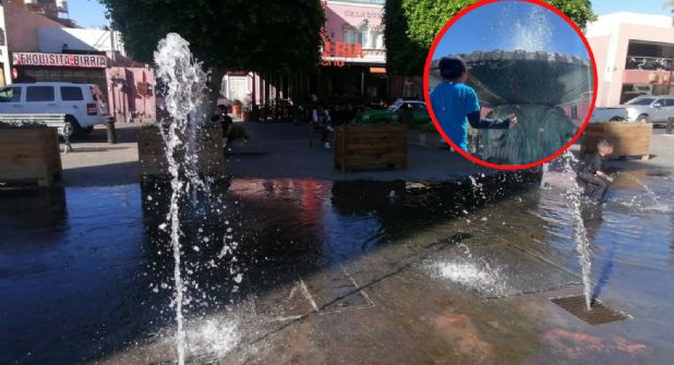 León, Guanajuato.- El calor se vuelve más intenso cada día en León. Las altas temperaturas en la ciudad zapatera no dan tregua y los ciudadanos recurren a muchas formas para disminuir la sensación calurosa que prevalece diariamente. Un helado, una botella de agua, aire acondicionado, todo recurso es válido. Pero uno de los métodos más utilizados por chicos y grandes es refrescarse cerca de una fuente de agua con la brisa fresca.