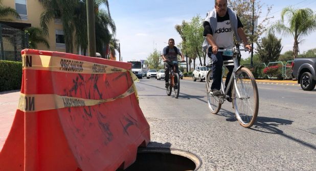Diariamente cientos de ciclistas y motociclistas pasan por el bulevar Adolfo López Mateos que se dirigen en dirección a la salida León-Silao, y rumbo al bulevar Aeropuerto, pero el hoyo que ya lleva más 48 días no se ha podido tapar, por lo que es un peligro para ellos ya que al tratar de evitar el hoyo ocupan espacio donde circulan los automovilistas.