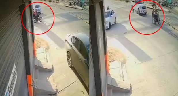 El video de las cámaras de seguridad de un local cercano se corta en cuanto la camioneta impacta contra la motocicleta.