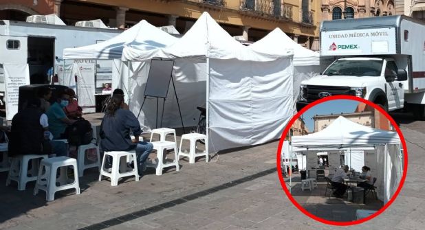 La Fundación Un buen Grupo de Amigos, junto con las unidades médicas móviles de Pemex se encuentran instaladas en el centro, justo frente a la Presidencia Municipal de León este lunes 27 de mayo.