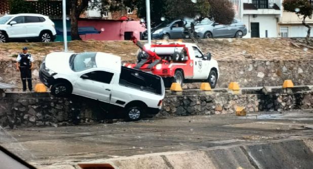 León.- El conductor de una camioneta sufrió ayer un accidente en el Malecón del Río después de perder el control y caer en un desnivel. Solo se quedó un susto y daños materiales, pues no presentó lesiones.