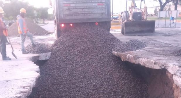 Las autoridades llevaron maquinaria y tuvieron que cerrar la zona para reparar el tramo afectado, de esta forma solo dejaron un carril de los 3 que existen para la circulación vehicular.