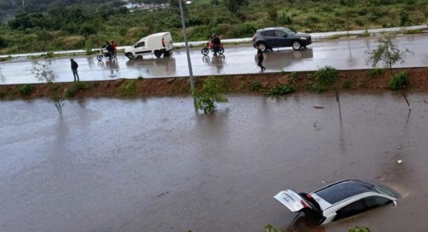 León-. Ayer en la tarde cayó un aguacero en la parte norte de León, y en la Avenida del Molino que está en la parte de atrás de la Presa de El Palote, todo se inundó, el agua cubrió los automóviles que circulaban por ahí, pero esto se debió a que el camellón hizo una barrera de contención con el líquido.