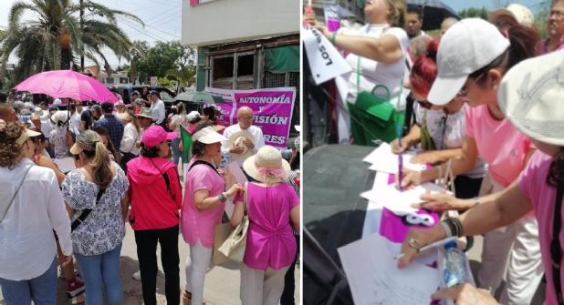 León.- Decenas de leoneses se dieron cita este domingo a las 11 de la mañana frente a las instalaciones del INE ubicadas en la colonia Jardines de Jerez, para exigir que se cumplan con lo que manda la Constitución de México y no se tenga una sobrerrepresentación legislativa de Morena en el Congreso de la Unión.