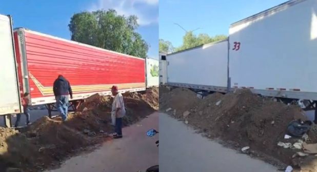 En el lugar se aprecian las cajas de tráiler en medio de la calle, así como a un lado de ellas los montículos de tierra, esto con el fin de impedir el paso de los mismos locatarios del mercado negro hacia las bodegas de la Central de Abastos.