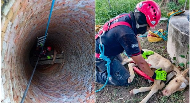 León.- Bomberos de León salvaron la vida de un potrillo que había caído a un pozo de 20 metros de altura.