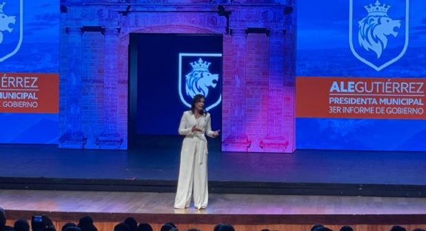 León.- Por la mañana, en Sesión Solemne de Ayuntamiento y por la noche ante la ciudadanía en el Parque Guanajuato Bicentenario, la presidenta municipal, Alejandra Gutiérrez Campos, rindió su Tercer Informe de Gobierno, en donde destacó los avances en el tema de seguridad, a donde se destina el 49% del presupuesto del municipio, con aumentos de sueldo del 32% a los policías y un 27% para el resto de las corporaciones, con becas, seguros y otros apoyos para tener la mejor Policía del país.