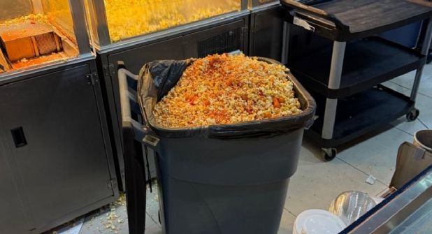 Palomitas de caramelos, enchiladas y de otros sabores, se desperdician en las las salas de Cinépolis, eso aunado al sobrante de refresco bebida que necesitan cientos de miles de litros agua para hacer esa bebida y que al final llegue al aparato digestivo de miles de mexicanos, en este caso leoneses.