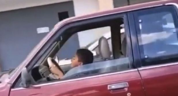 El niño manejaba una camioneta color guinda y desde otro vehículo en movimiento fue grabado a la altura de los bulevares Francisco Villa y Vasco de Quiroga.