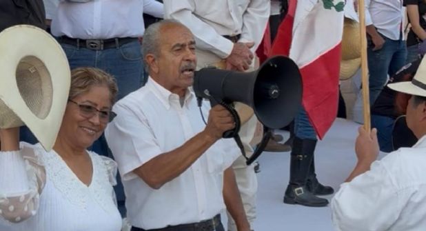 Al finalizar su canto, Jesús Cabrera, volteó hacia la gente y gritó: “En la lucha saldremos victoriosos, defendiendo de los morenos, el demonio, y a los demás narcos, amén, amén”.