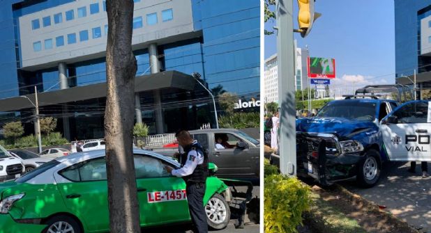 En la zona circulaba la patrulla de la Policía Vial de León número 414 y chocó contra un taxi de color verde.