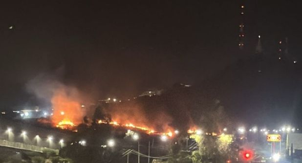 Grandes llamaradas volvieron a mostrar el inmenso poder que tiene el fuego que está noche volvió a manifestarse sobre los matorrales del Cerro Gordo, esta vez, cerca de la tienda Cotsco.