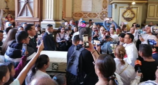 Los familiares realizaron una valla humana, mientras los ciudadanos continuaban con porras. Mateo ingresó a las 12:10 horas a la Catedral.