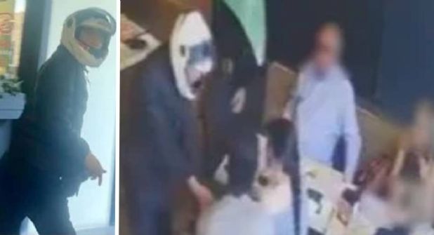 Poco tiempo después, los hombres se pararon de la mesa y salieron del restaurante y luego entraron un hombre con casco de motociclista de color blanco junto con otro hombre quienes portaban armas de fuego y se dirigieron hacia donde estaba Manuel con su familia.