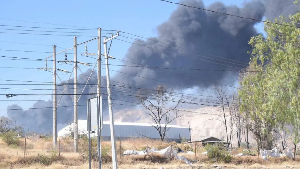 León, Gto.- Un incendio de pastizal en la colonia Jacinto López se propagó rápidamente hasta alcanzar una recicladora, generando una densa columna de humo que pudo verse desde distintos puntos de la ciudad.