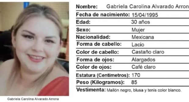Gabriela Carolina Alvarado Arrona, de 30 años de edad, fue reportada como desaparecida por sus familiares desde el pasado 8 de mayo.