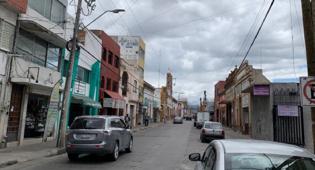 Cruzando el bulevar pareciera que es otra ciudad: una calle por donde casi no pasan personas. Solitaria. Negocios cerrados como el edificio en donde estaba el servicio de televisión por cable (Megacable). La vieja casona en donde estaba la Procuraduría Federal del Consumidor (Profeco), está en ruinas, con los vidrios rotos, y casas antiguas a las que solo les quedó la fachada antigua, ahora son estacionamientos.