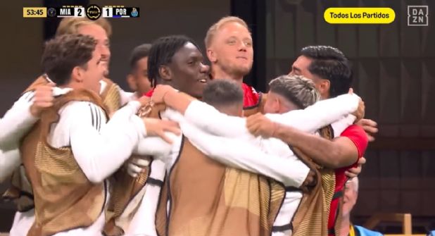 León, Guanajuato.- El ex portero bicampeón con el Club León, William Yarbrough, celebró desde la banca del Inter Miami, el golazo de tiro de castigo del astro argentino Lionel Messi, que le dio el triunfo al Inter Miami en el Mundial de Clubes.