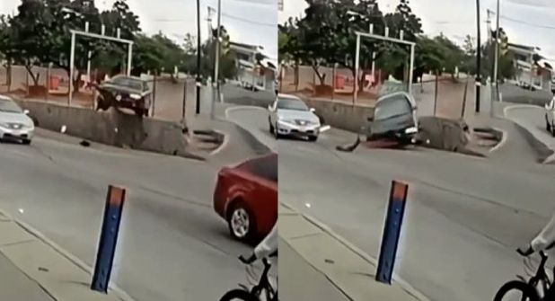 El hecho ocurrió la tarde de este lunes 23 de junio en la glorieta ubicada en el cruce de los bulevares San Juan Bosco con Juan Alonso de Torres. En un video que circula en redes sociales se puede apreciar que, pese a la inercia del coche por patinarse en bajada, no hubo daños a terceros.