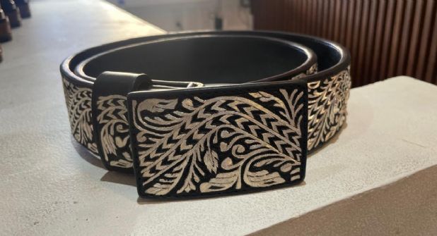 Son cinturones piteados, sus formas son diversas: caballos, flores, santos, letras. Figuras geométricas: rombos, triángulos, cuadriculas. Elaborados por las manos de alguien que busca la redención a través del arte de la marroquinería. Cada figura está hecha de plata, Por eso brilla. Por eso son tan llamativos. Son costosos.