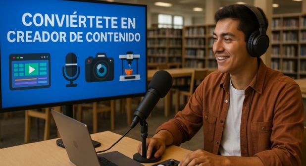 En esta biblioteca, cualquier persona puede convertirse en creador de contenido de 0 a 100. Todos los días se imparten talleres gratuitos para niños, jóvenes y adultos, impartidos por expertos en áreas digitales, tecnológicas y artísticas.