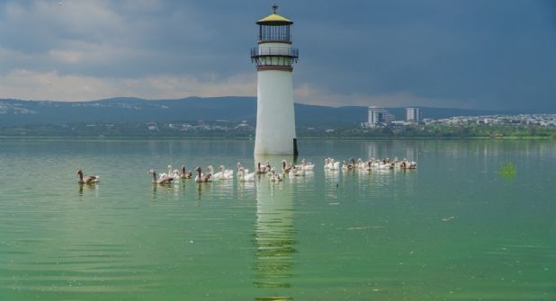 Con las lluvias el paisaje de la Presa El Palote nos regala lindas imágenes, donde se aprecian desde la ex hacienda casi cubierta por el agua, el faro y hasta los patitos disfrutando la zona.