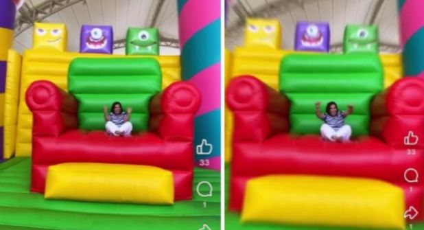 Santos de Anda, promovió el evento a través de este video, en el que, junto con algunos miembros de su familia invita a disfrutar de todo lo que se ofrece en las instalaciones de la Feria de León, aunque la primera imagen es sorprendente, ya que apenas se alcanza a ver sentada en la gigantesca pieza del sofá de plástico.