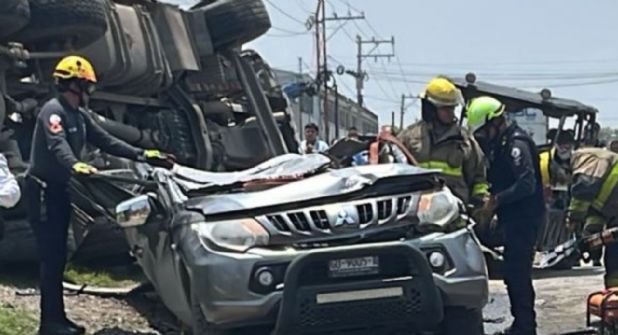 Los lesionados están prensados dentro de una camioneta pick up de marca Mitsubishi color gris. En la zona se generó tráfico debido a la magnitud del accidente así como a las labores de rescate.