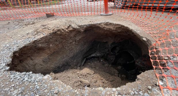 Se espera que en máximo dos días quede reparado el socavón, el cual está rodeado de una vieja tubería hidráulica.