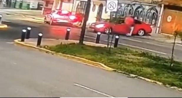 En el video se ve cómo en pocos segundos los ladrones llegan, dos bajan del Golf, uno la avienta y otro sube al vehículo robado para escapar.