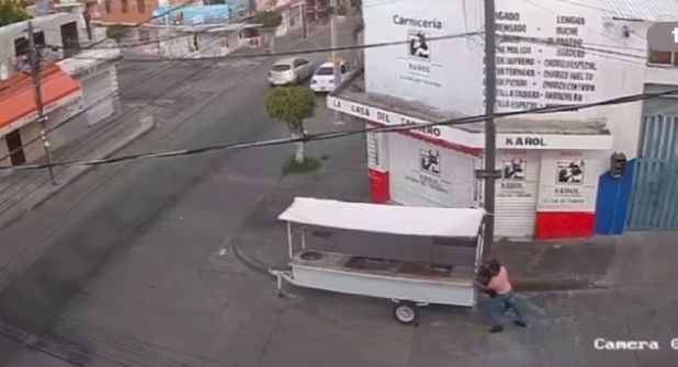 Este domingo dos ladrones intentaron llevarse un carrito de tacos que estaba afuera de la Carnicería Karol, cerca del templo de los Olivos.