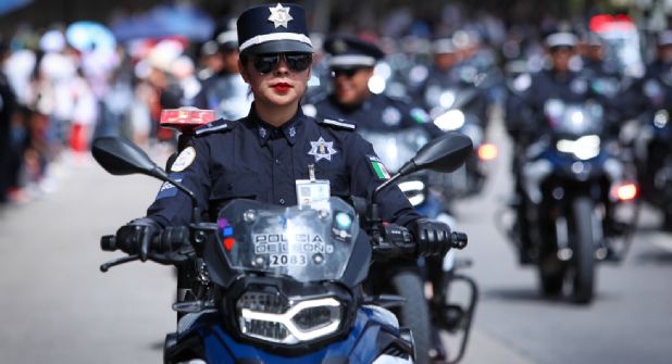 La Policía Motorizada desfiló con sus unidades nuevas para reforzar la vialidad de la ciudad, así como las unidades Jeep que trabajan en la Policía Rural, y la Policía Turística, así como el Cuerpo Heroico de Bomberos, Protección Civil, Seguridad Privada, Jueces Cívicos.