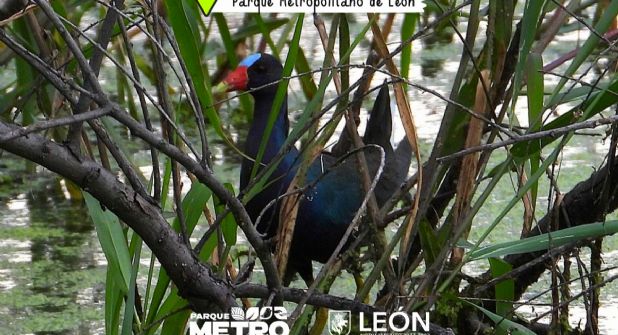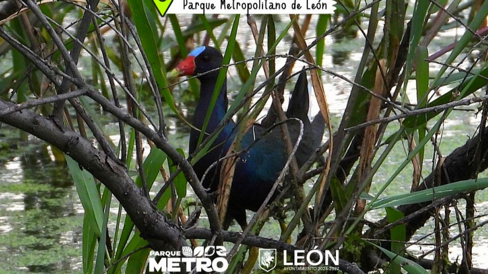 El Parque Metropolitano de León dio a conocer un nuevo avistamiento de la gallineta morada (Porphyrio martinicus), registrado por el observador de aves Luis Mauricio Mena, conocido como “Luisave”.
