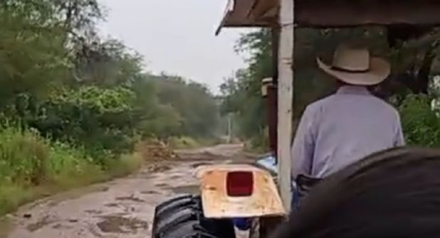 León, Guanajuato.- Sin cobrar nada, don Juan Ramírez con su tractor y un remolque lleva a diario a la escuela a los niños del ranchito La Virgen para evitar que se enloden, pues el camino está en pésimas condiciones.
