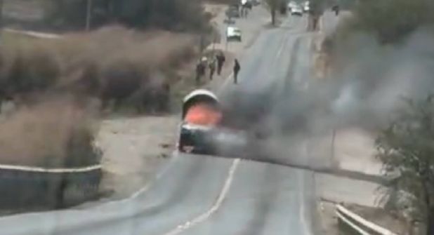 León.- Salir se volvió un riesgo. En la comunidad de Santa Ana del Conde, al sur del municipio, una camioneta de carga fue interceptada e incendiada en plena carretera. El fuego comenzó en el cofre y en cuestión de minutos consumió la parte frontal del vehículo, obligando a conductores a detenerse o dar vuelta en medio de la confusión.