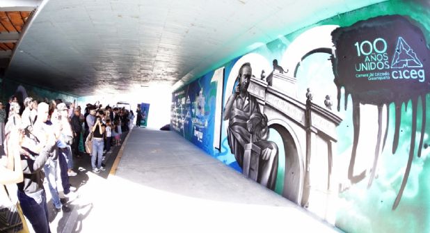 La intervención artística debajo del conocido "Puente del Amor", cuenta con 120 metros lineales de grafitis que enmarcan el mural conmemorativo por el centenario de la industria del calzado organizada.