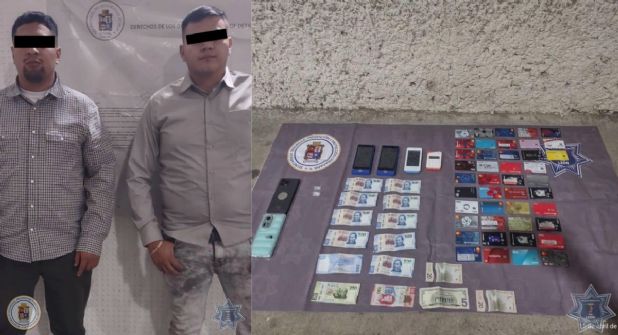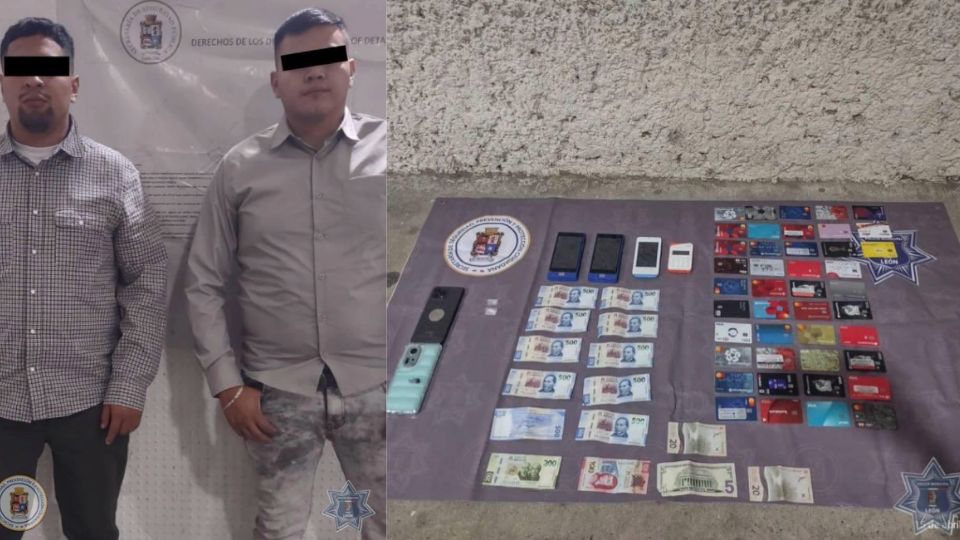León.- Dos hombres que se dedicaban a clonar tarjetas bancarias en León fueron detenidos, tras un reporte ciudadano en la colonia Azteca.