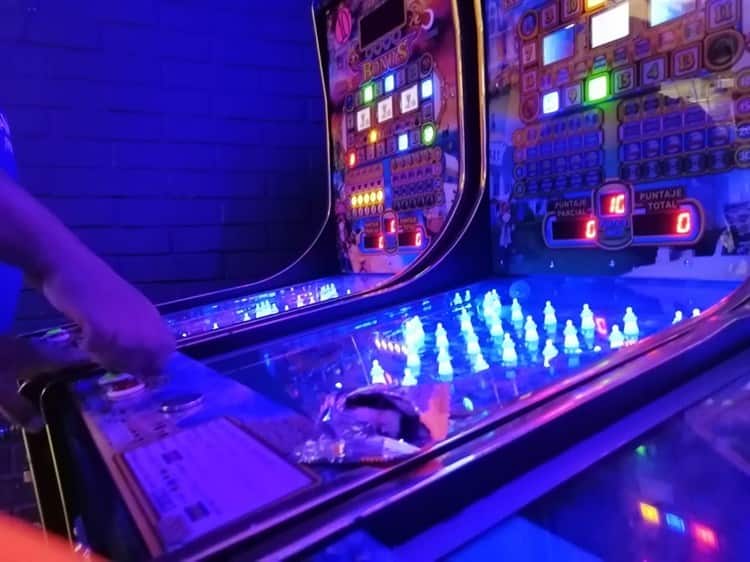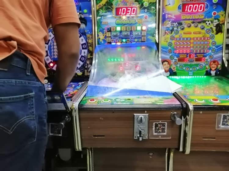 Junto a él están otros dos hombres que juegan su suerte manipulando botones y palancas. Los números en la pantalla les indican las oportunidades que les quedan, los puntos y el dinero que van monetizando. La mayoría de las personas que juegan sonríen y no separan la mirada de las máquinas. Los botonazos suenan y uno que otro grito de festejo o fracaso.
