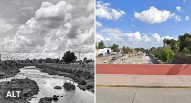 León-. Un par de fotografías compartidas a través de Twitter muestran el antes y el después de cómo fue que cambió el río natural que cruza León desde el norte al sur, hoy llamado Malecón del Río.