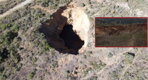 El acceso allí es sumamente peligroso, en los alrededores de los agujeros se pueden observar grietas marcadas con pintura roja, las fisuras en la tierra son visibles y amenazan con hacerse más grandes. El agujero se trago toda la vegetación que había en esa parte del cerro. La tierra y las piedras se desmoronan en los bordes. Al pisar el suelo el sonido es hueco.