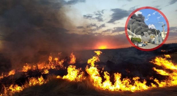Los incendios en la ciudad más grande de Guanajuato han sido recurrentes, el domingo 28 de mayo se registró otra gran quema que pudo verse a varios kilómetros de distancia en la ciudad, fue el caso de una quema de pastizal que corrió hasta alcanzar 2 naves industriales.