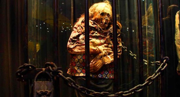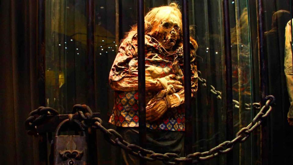 Entre barrotes, con crucifijos de metal colgando, es exhibido en Guanajuato el cadáver momificado de una mujer. Sin embargo, ésta es presentada de una forma aún más peculiar. Incluso, al grado de causar molestias en algunas personas. El Museo de las Momias de Guanajuato exhibe a este cuerpo como una presunta bruja que vendió su alma al diablo para mantener la eterna juventud.